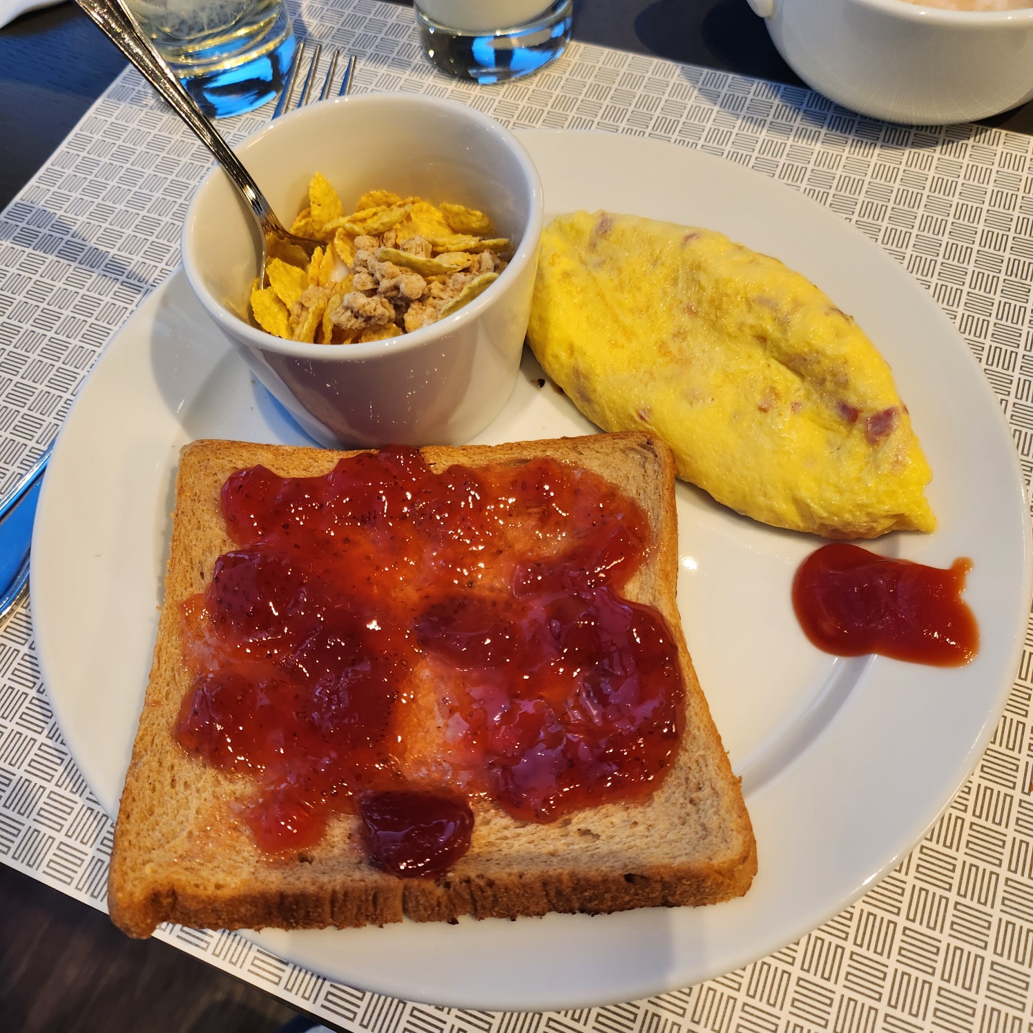 투숙객이 많으면 오믈렛 줄을 서야한다던데 빨리 간 탓인지 줄은 안 섰습니다.