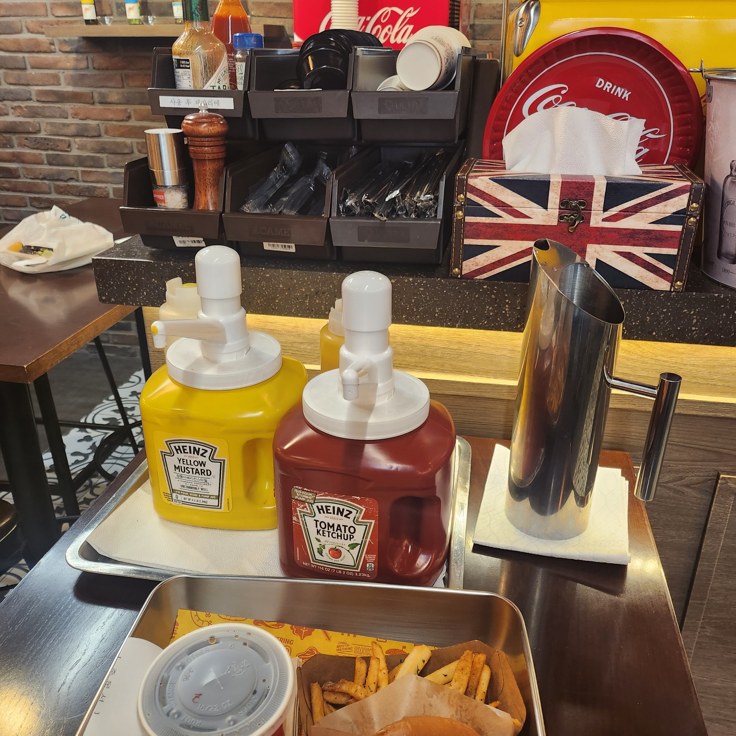 머스타드와 마요네즈,케챱도 구비되어 있습니다.