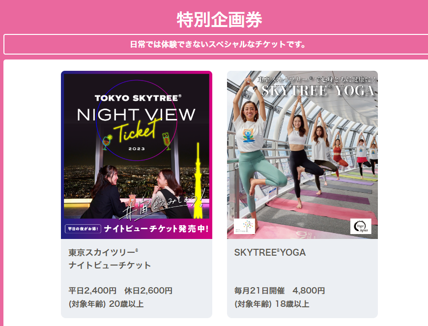 스카이트리요가(매월21일 한정/18세이상):4800엔
