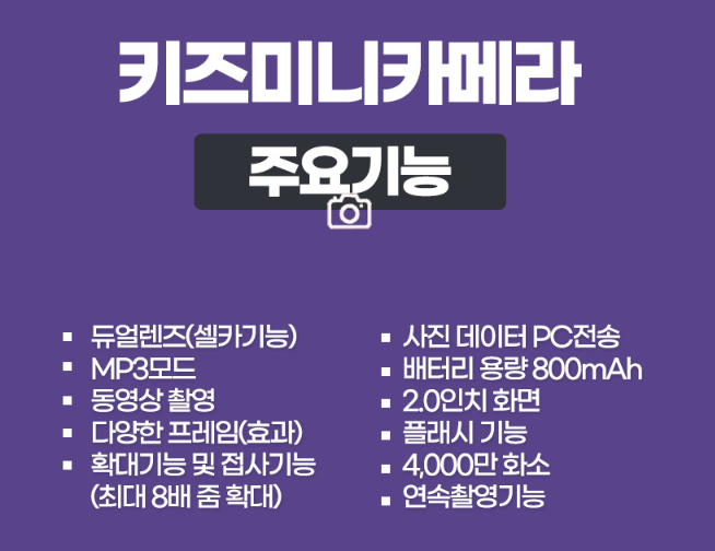 키즈카메라 구매 시 SD카드는 꼭 필수로 선택하시길 바랍니다.