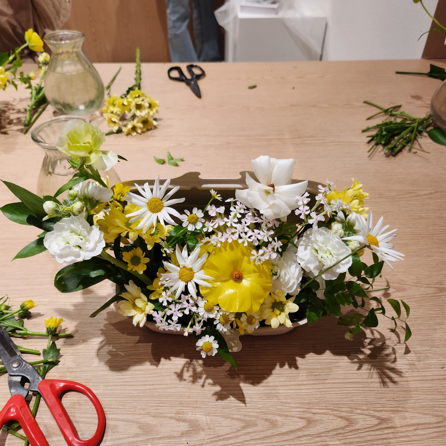 이번 클래스의 꽃 색감은 흰/노랑 이였는데