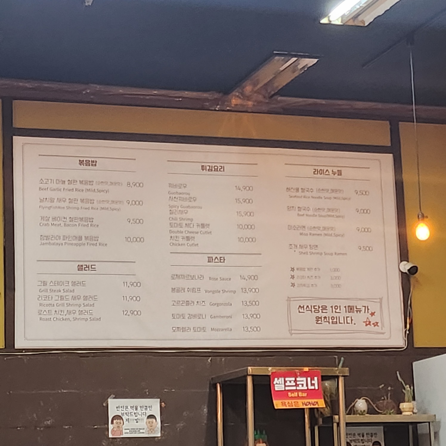 메뉴판 밑으로 셀프코너가 위치해 있습니다.
