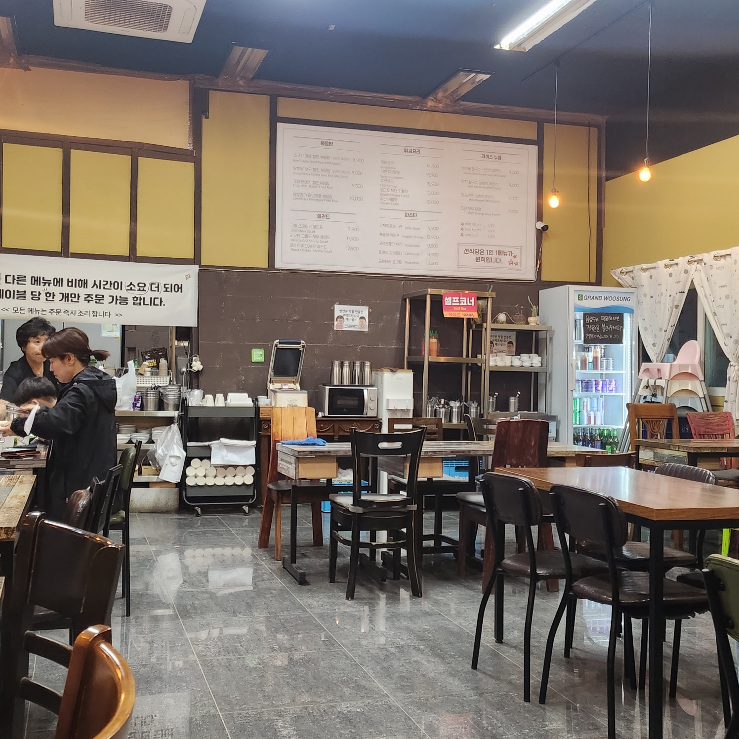 내부 인테리어는 노란 페인팅과 원목 테이블 의자로 정겹게 꾸며놓으셨습니다.