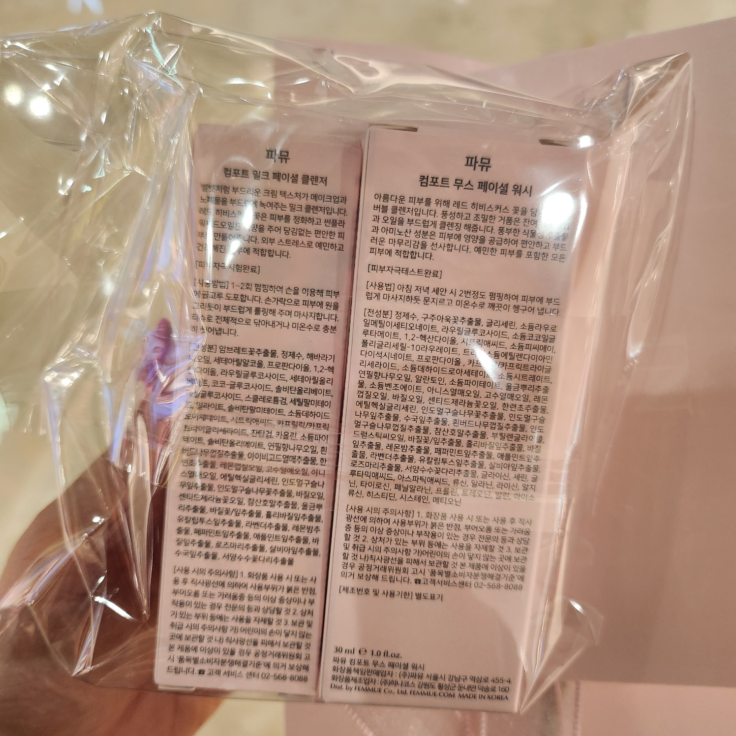 파뮤 브랜드 화장품 설명서가 들어있는 카테고리와 생화입니다.