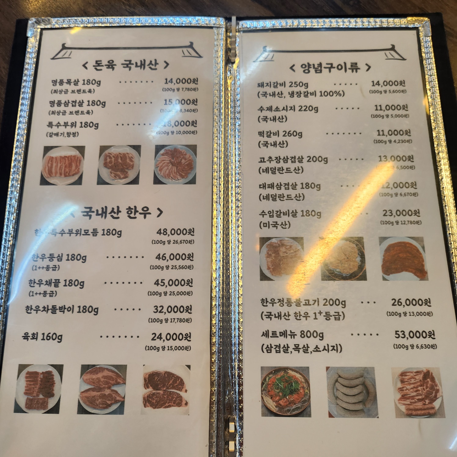 돼지고기, 한우, 육회, 양념구이류 등 다양한 메뉴가 많아서 메뉴 선정하는데에 꽤나 시간이 걸렸습니다.