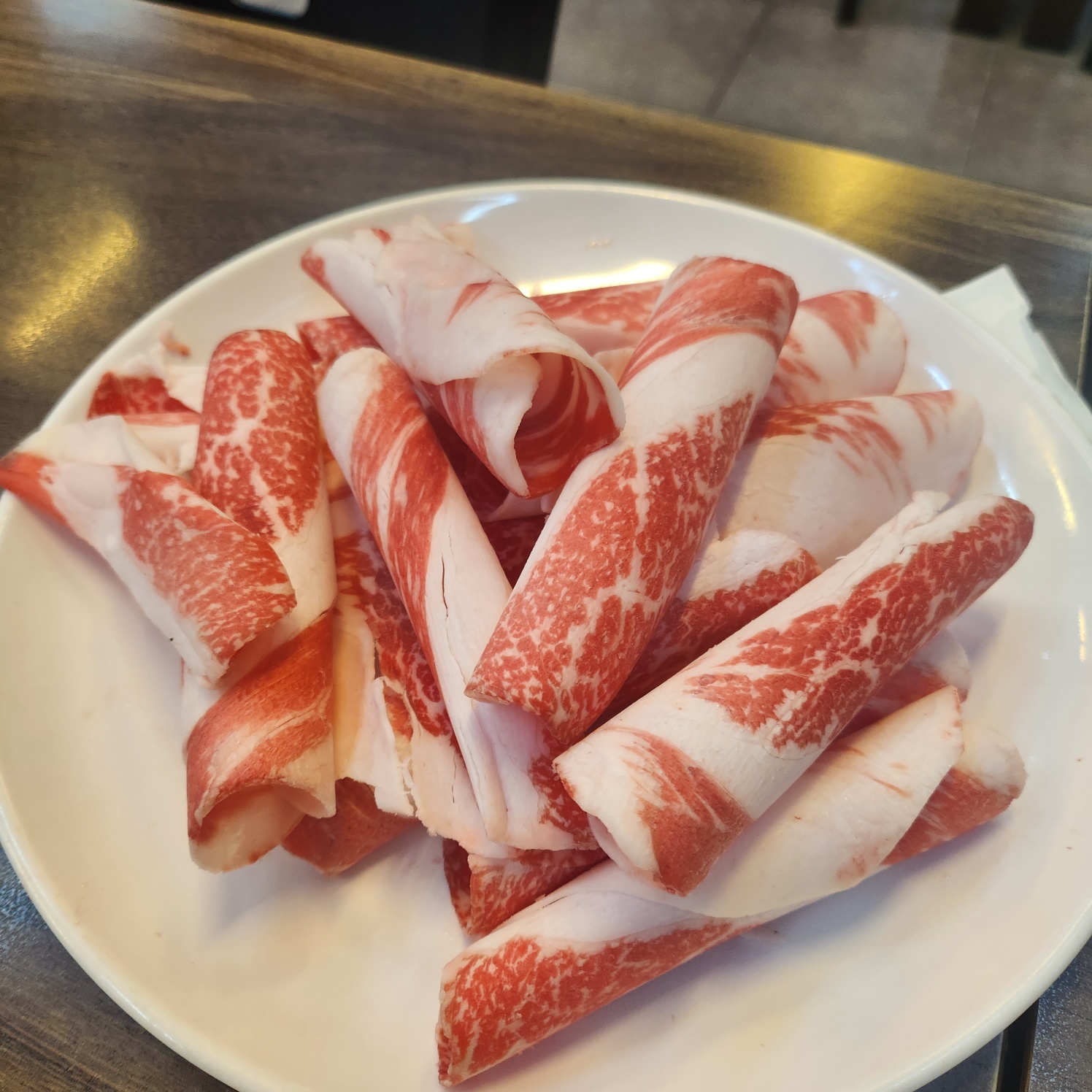 등심을 다 먹었을때즈음 한우차돌박이180g(32,000원)을 놔주셨습니다.