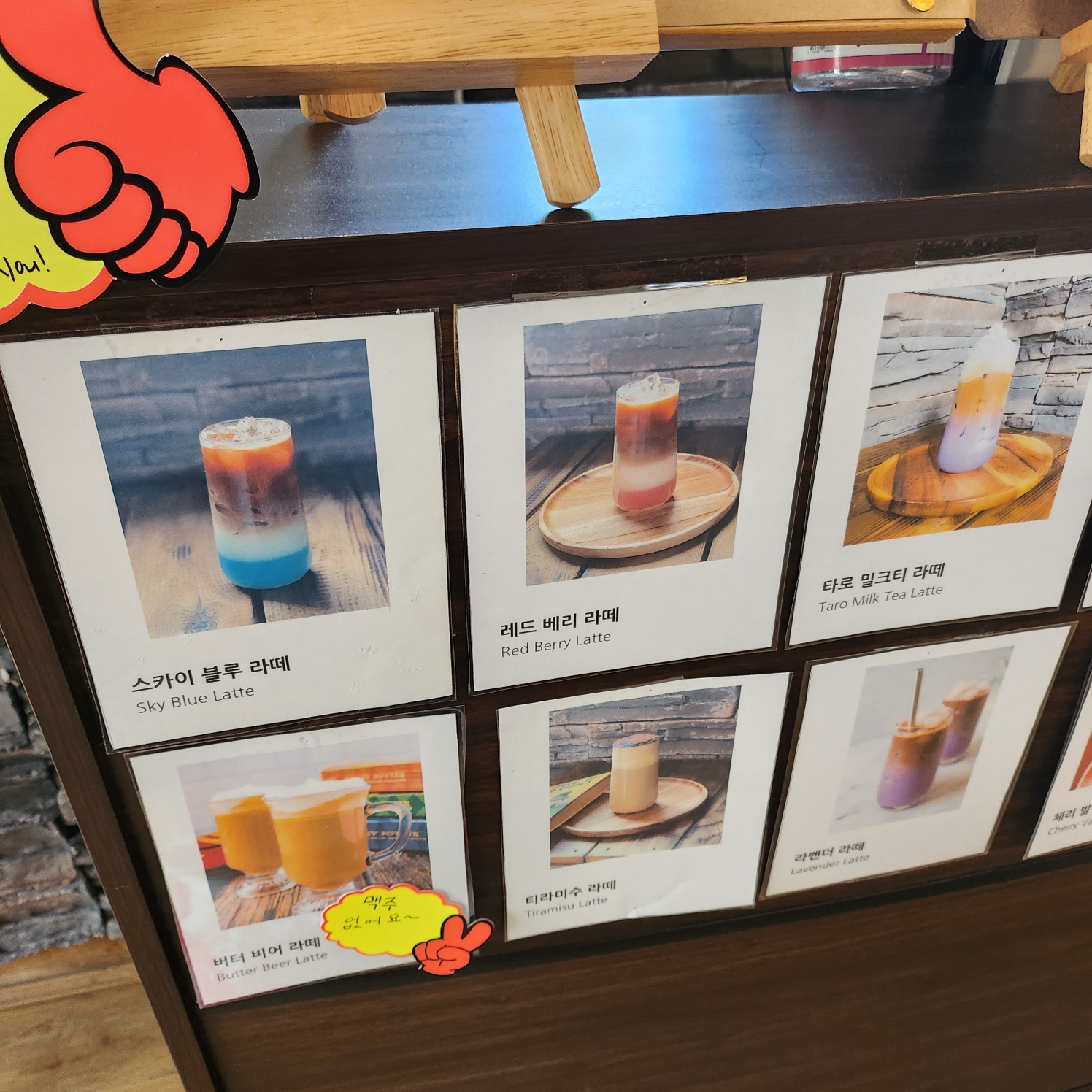 기본 라떼를 시키려고 하다가 카운터 밑에 사진으로도 보이는 메뉴중에