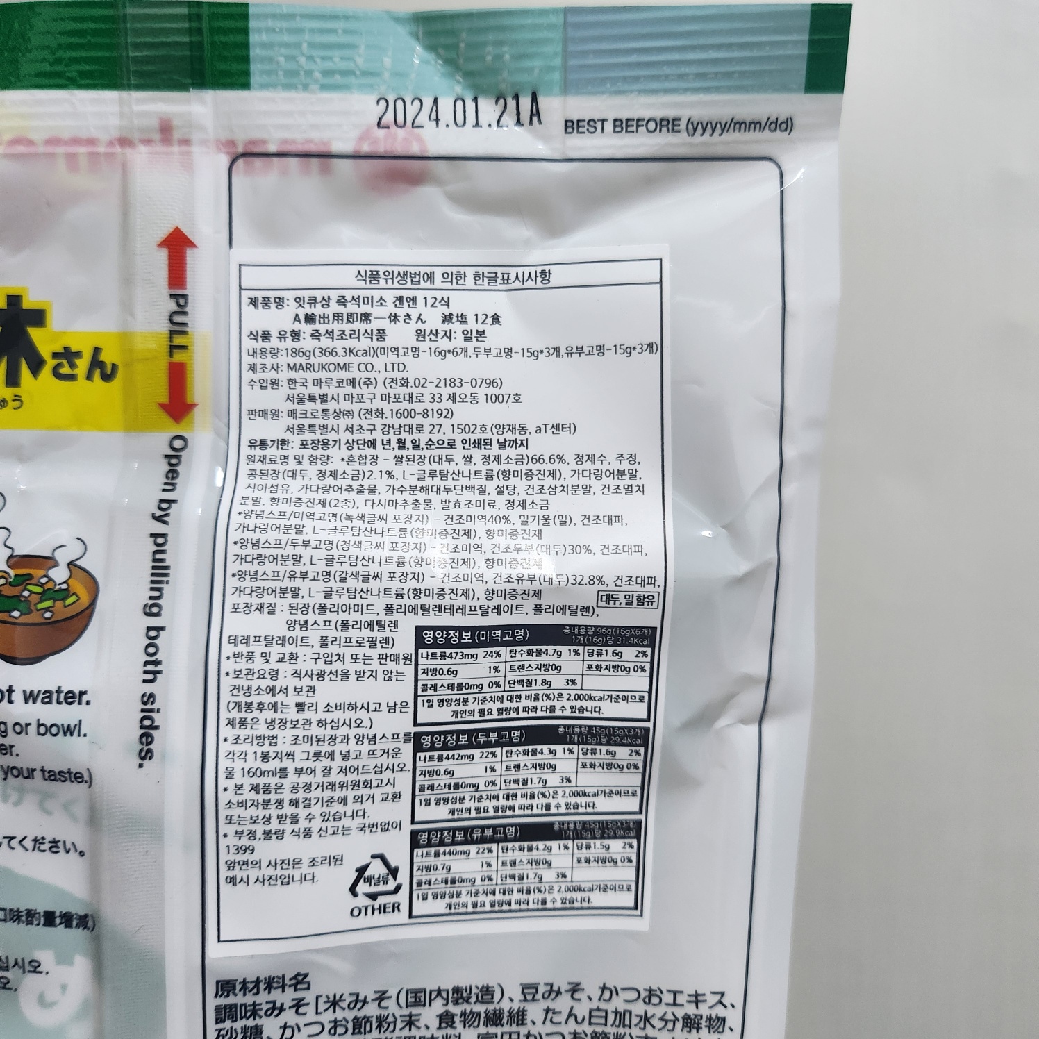 미소(된장)는 1인분씩 12개로 나뉘어 개별 포장이 되어있습니다.