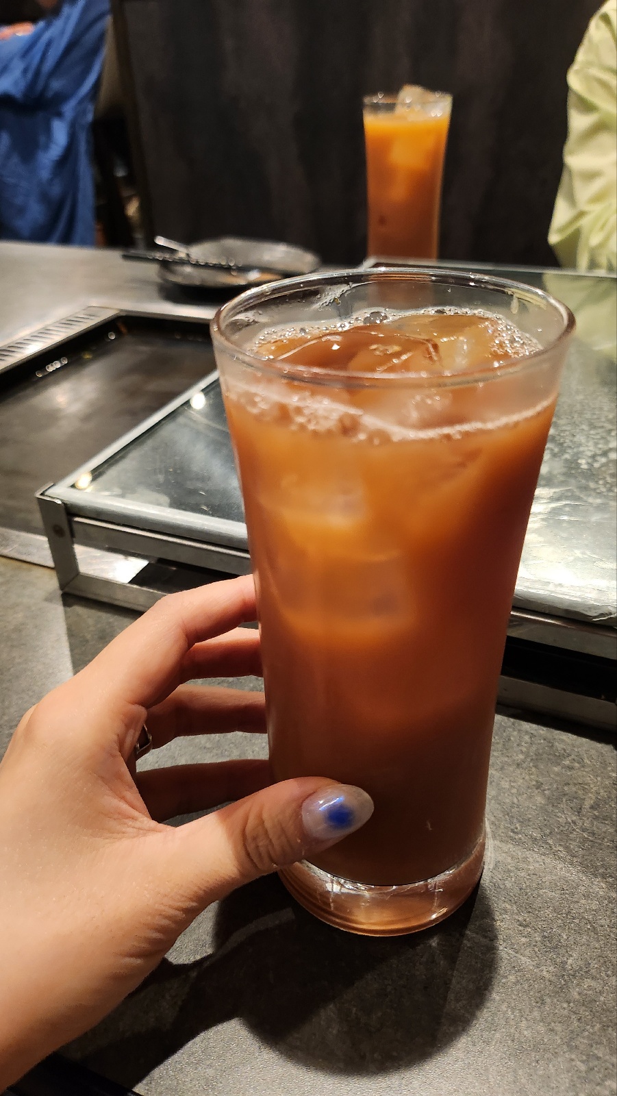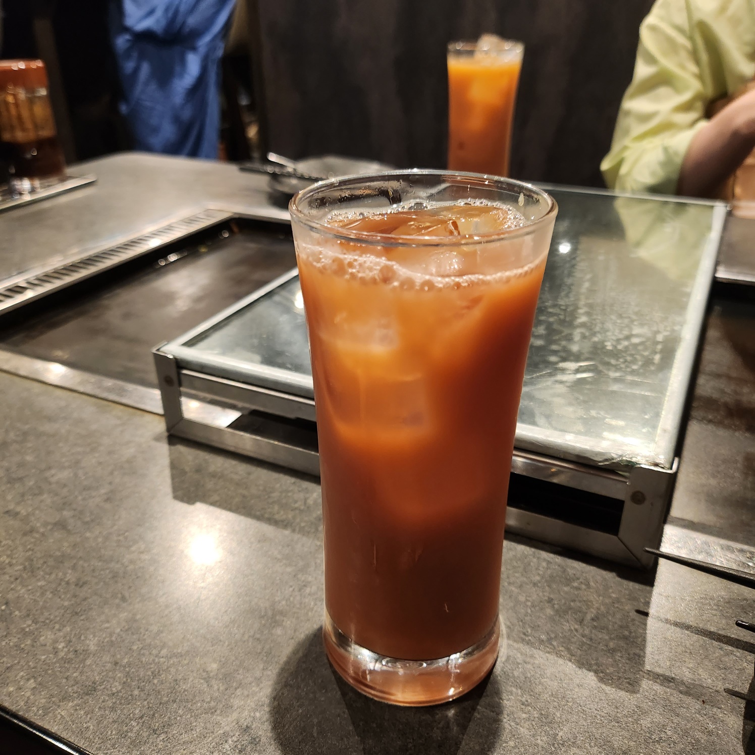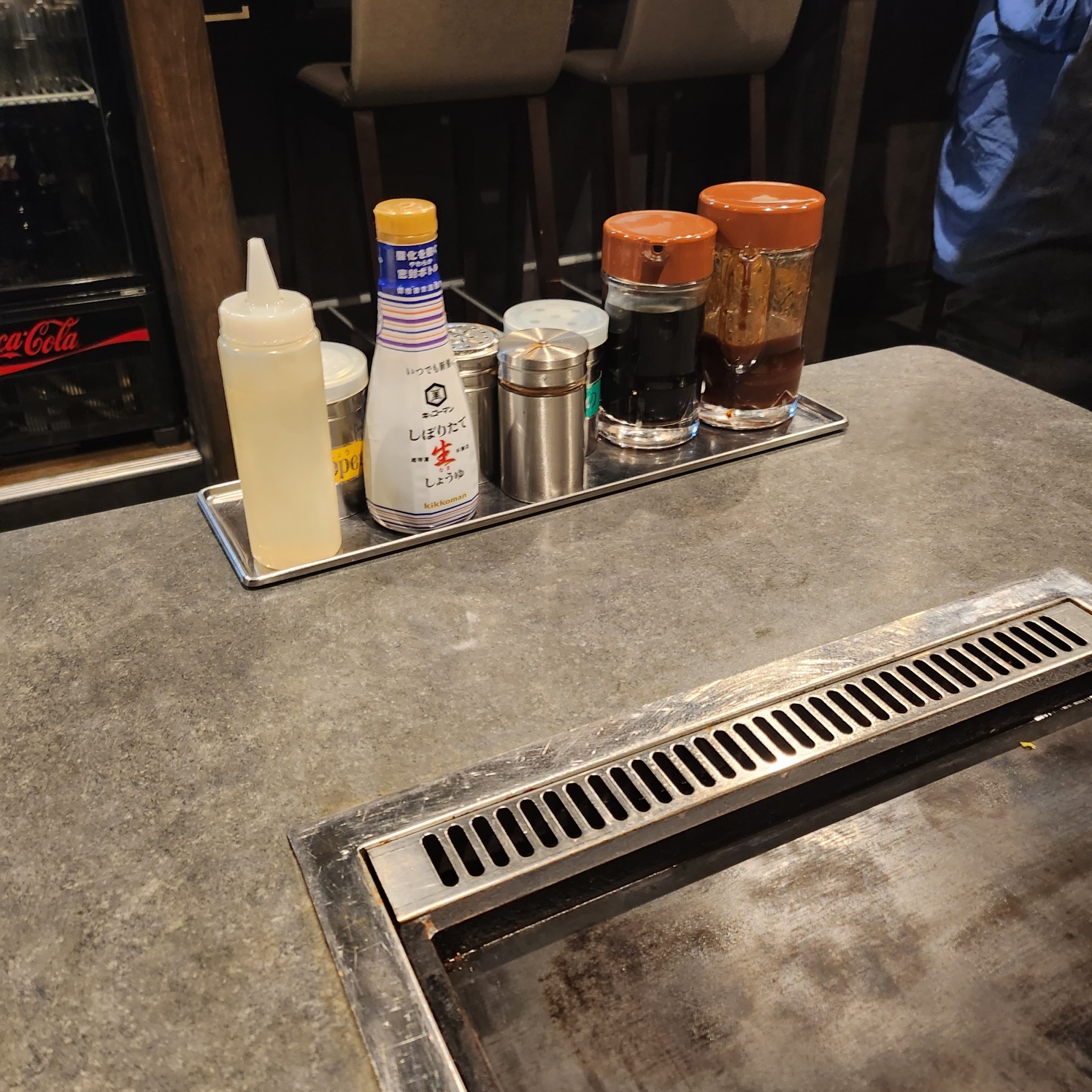 테이블 가운데는 철판으로 되어있으며 간장과 기름,