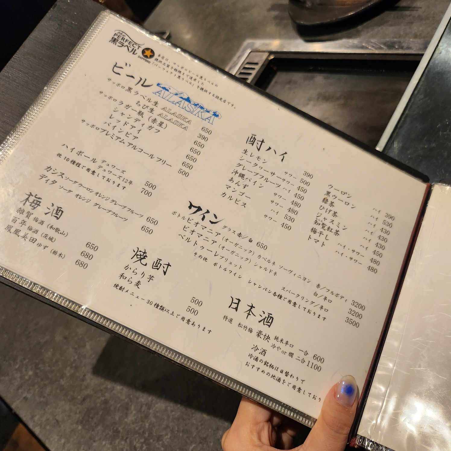 주류 메뉴판입니다.