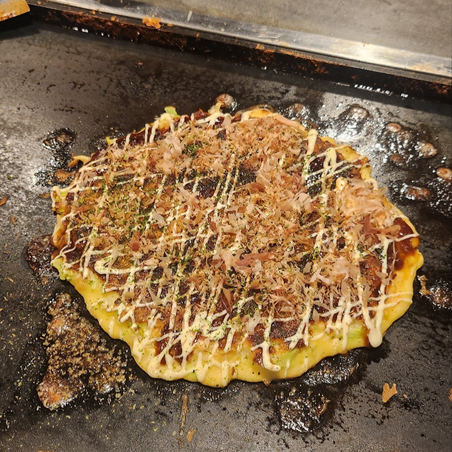 오코노미야키는 우리가 아는 모습의 맛있어 보이는 오코노미야키로,
