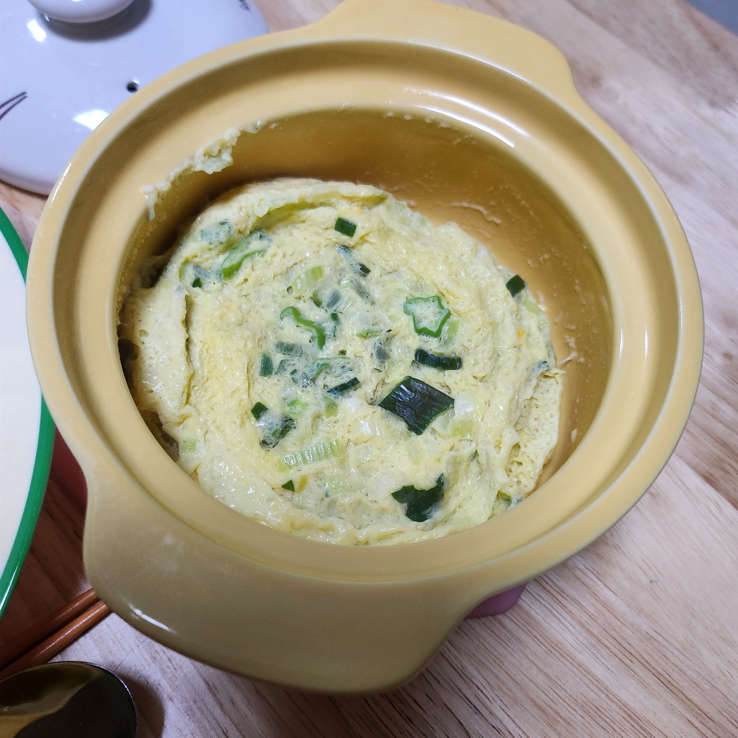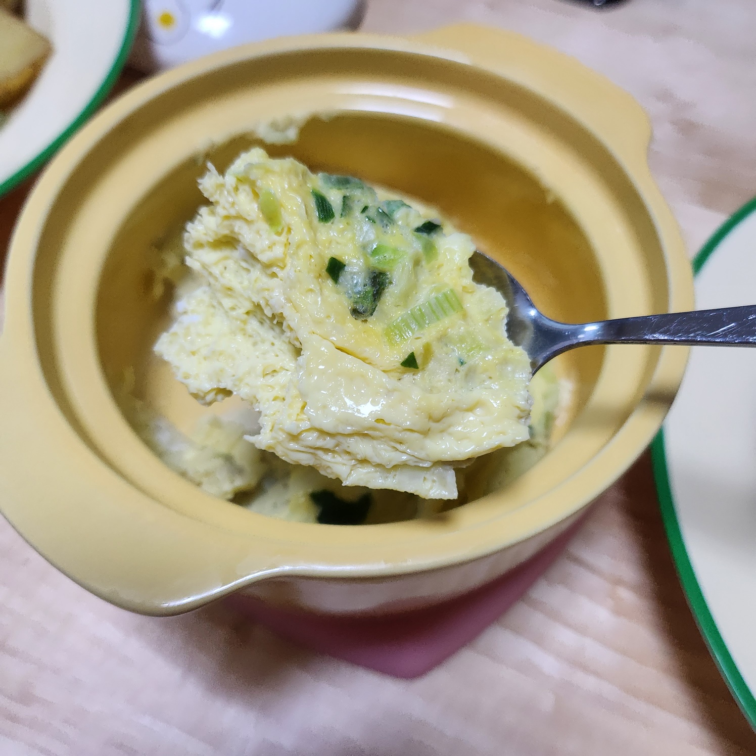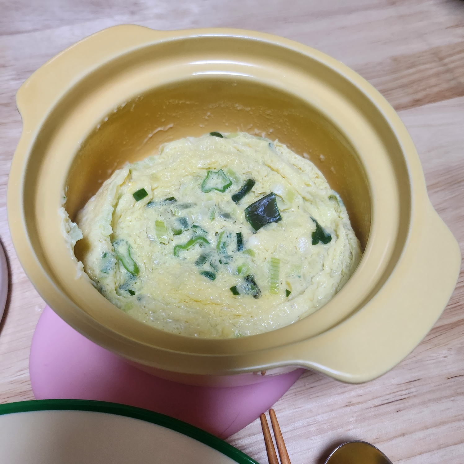 그렇게 전자레인지에서 2분 넘게 돌려서 완성된 계란찜입니다.
