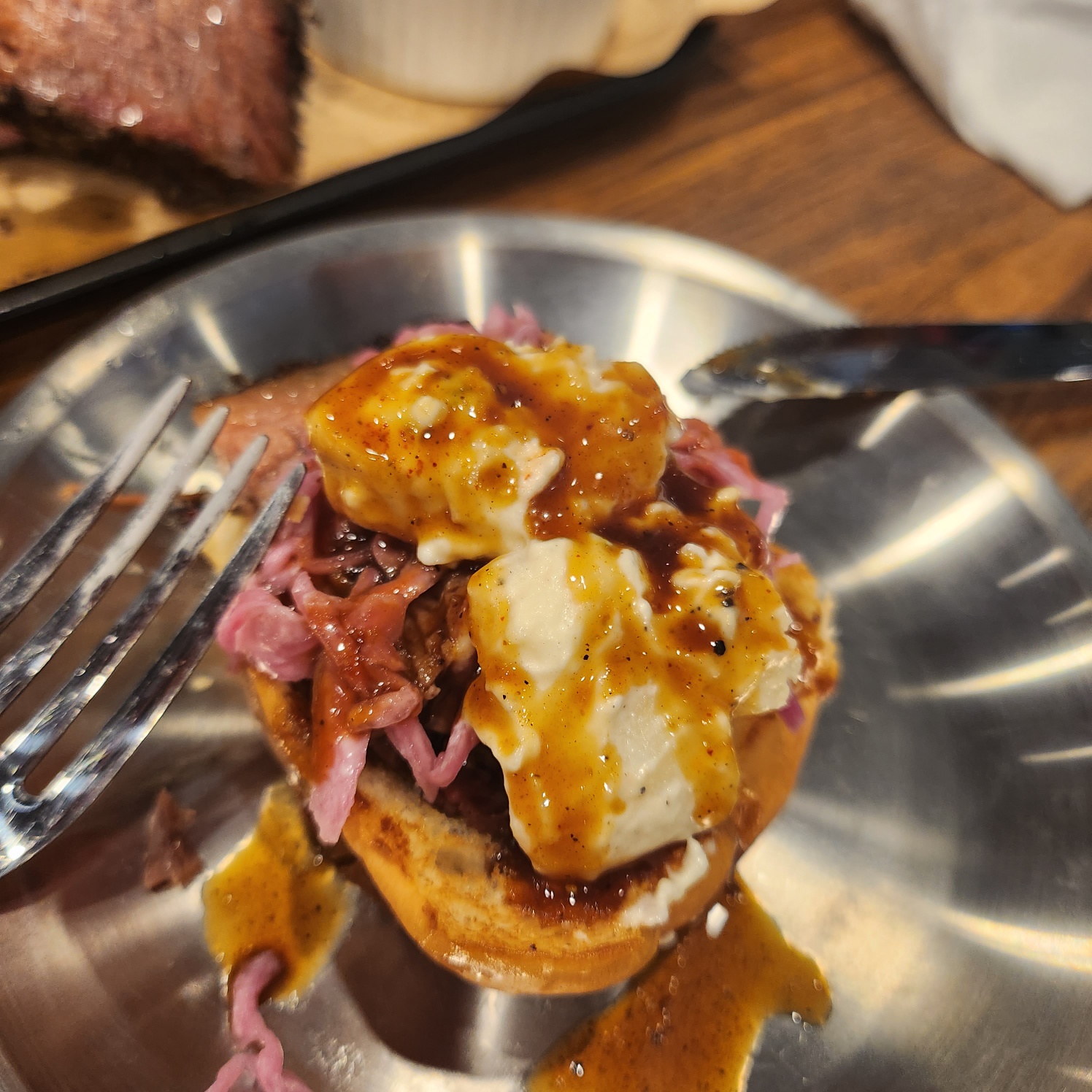 팽성 스모크타운의 브리스킷이 조금 더 부드럽고 건들면 바로 무너지는 듯한 부드러움을 가지고 있는 반면