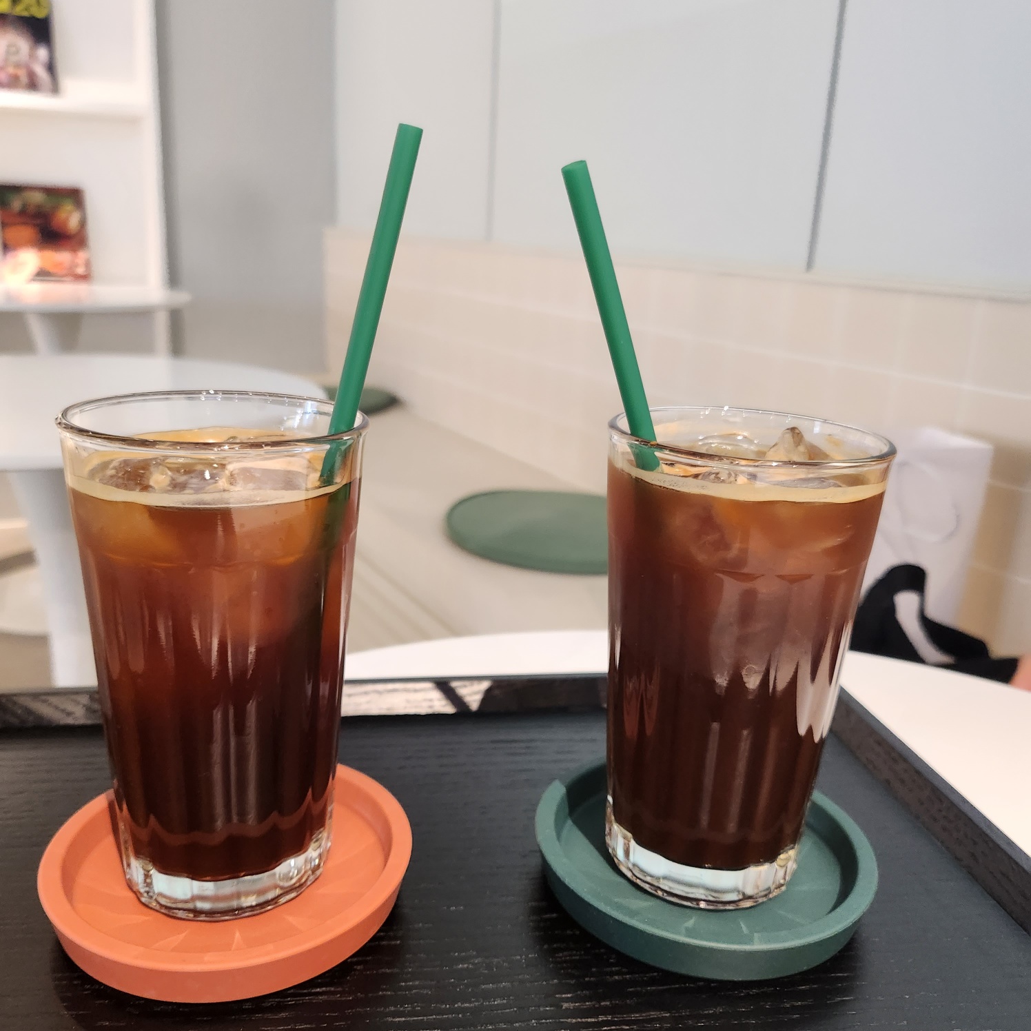 그리고 카운터에 가서 아이스 아메리카노를 두 잔 주문했습니다.
