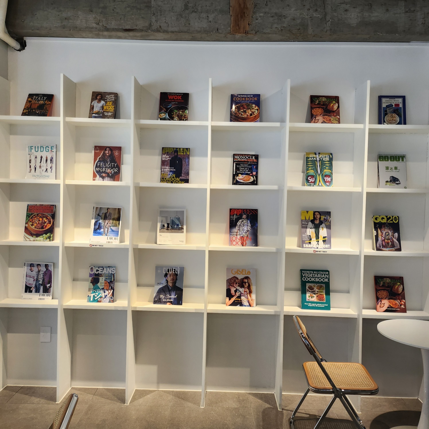 화이트톤의 벽 장식이라 잡지가 더 돋보이는 것 같습니다.