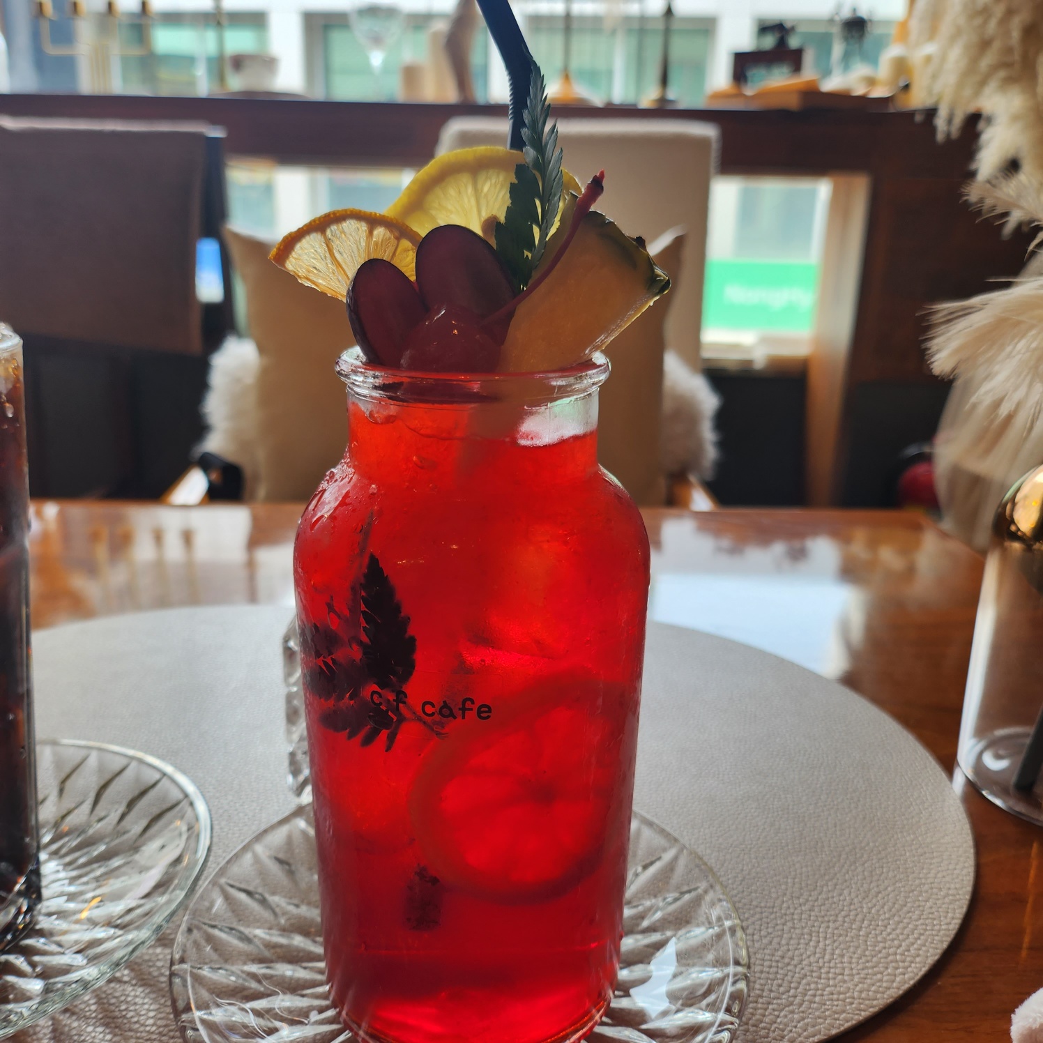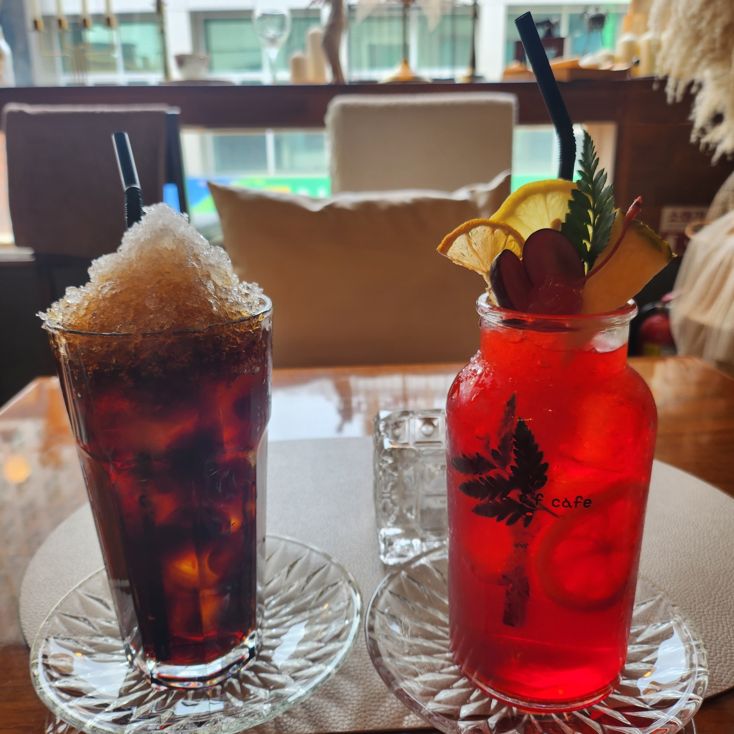 체리에이드는 통통튀는 맛에 위에 과일까지 올려져 있어 상큼하게 마실 수 있었습니다.
