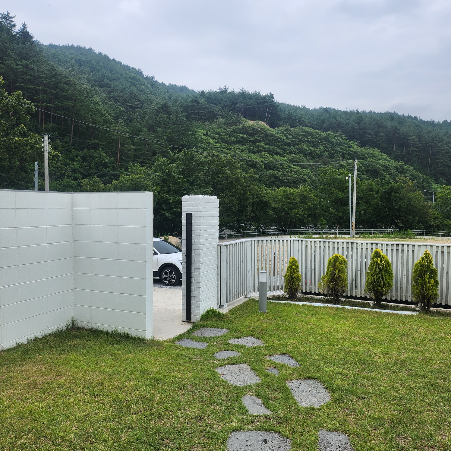 3번의 문을 열고 들어오면 마당과 독채로 된 펜션 입구가 보입니다.