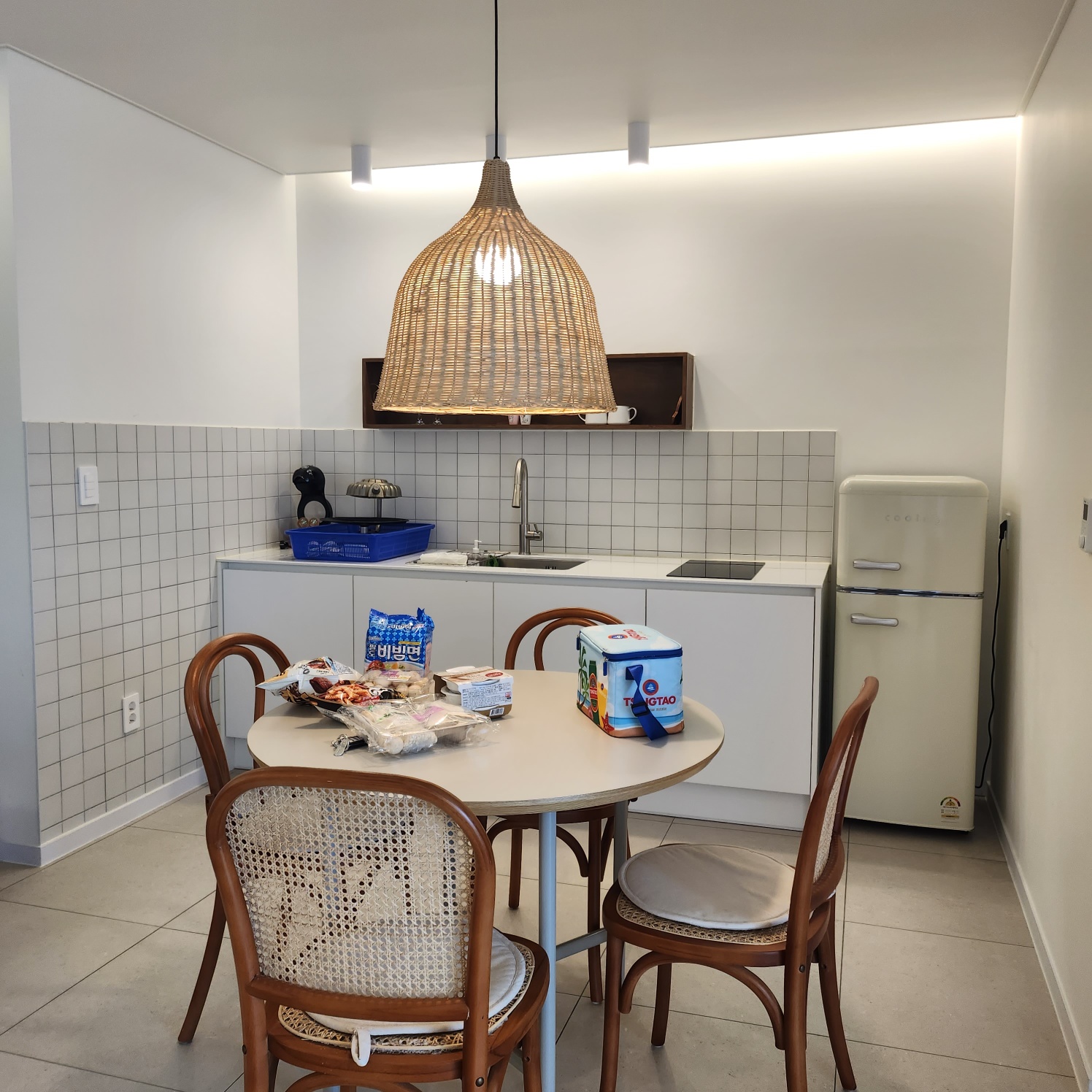 부엌이랑은 벽으로 나누어져 있는데, 한 켠으로 카운터석같이 되어있으며,