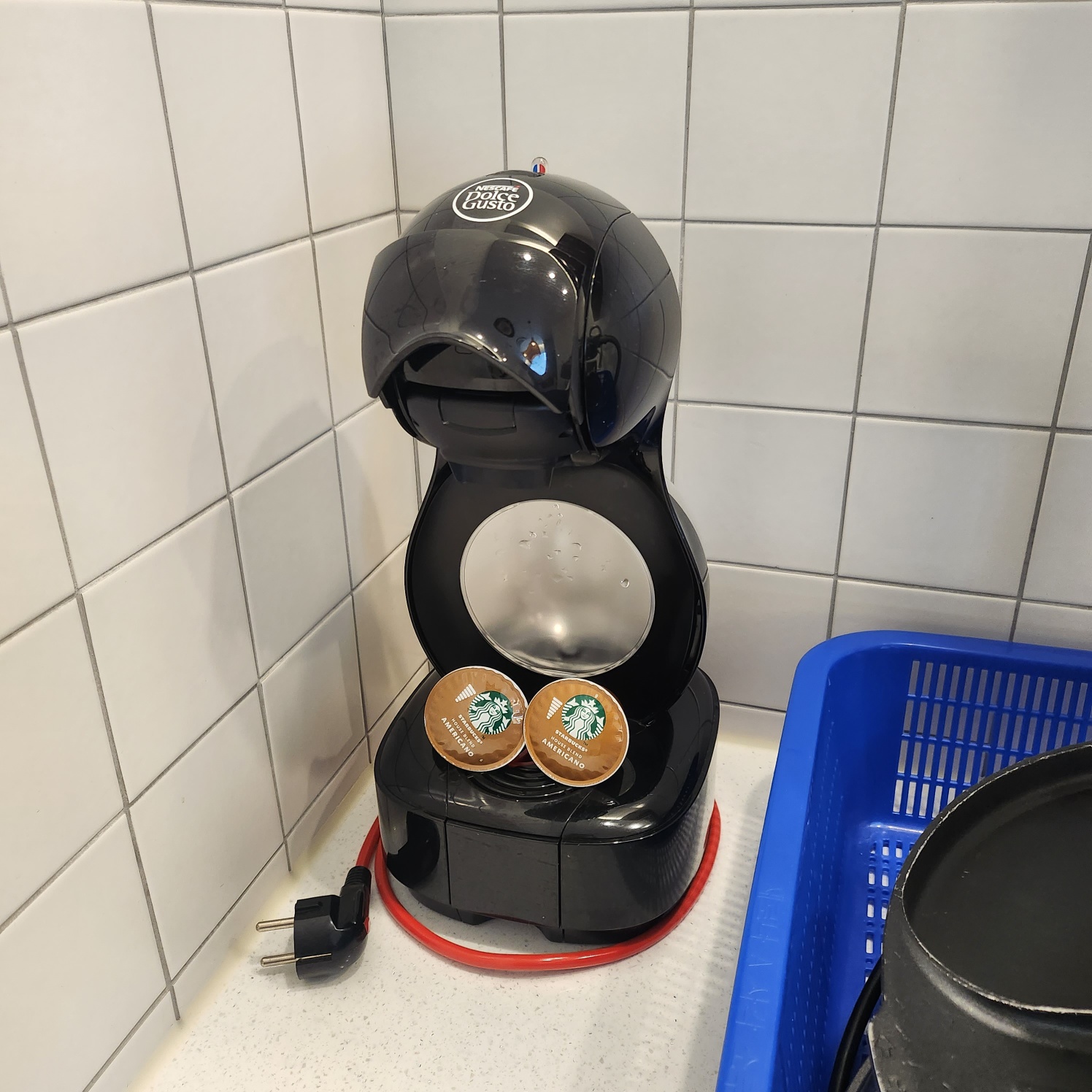 그 옆에는 커피머신과 캡슐까지 센스있게 구비되어 있습니다.