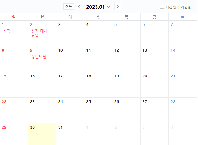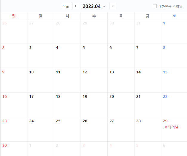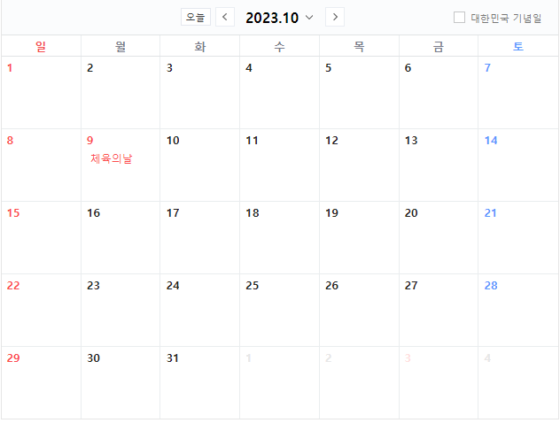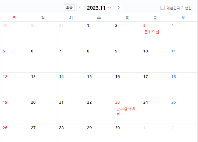 6월과 12월 빼고는 공휴일이 모두 있는걸 확인할 수 있습니다.