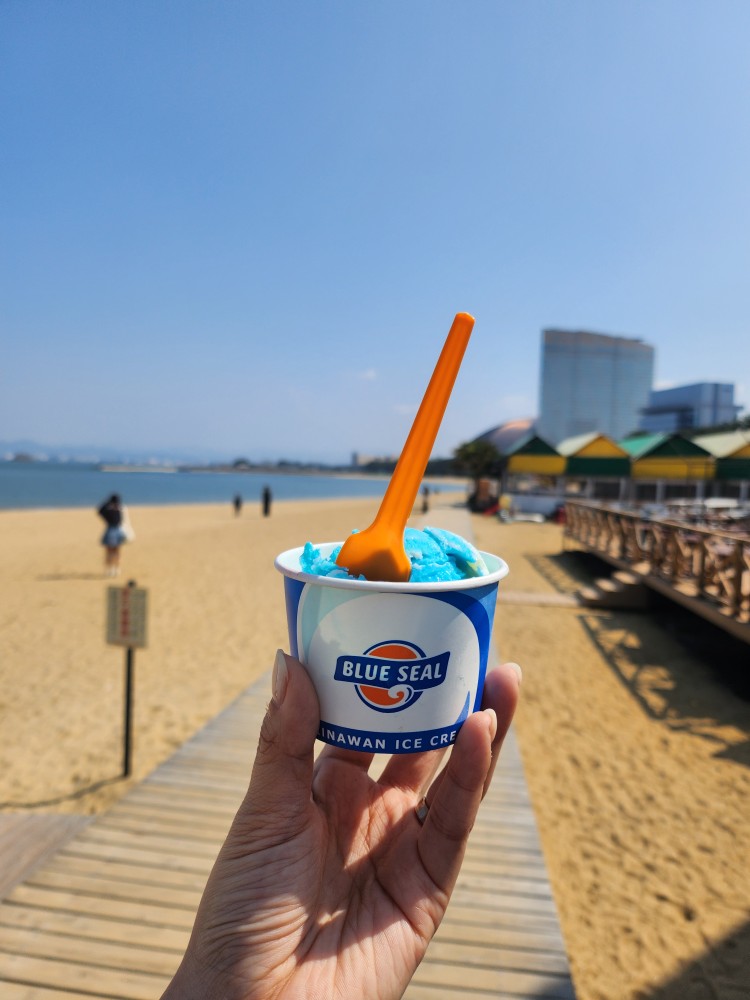 예전에 오키나와에 놀러 갔었을적 1일 1일 블루씰 아이스크림을