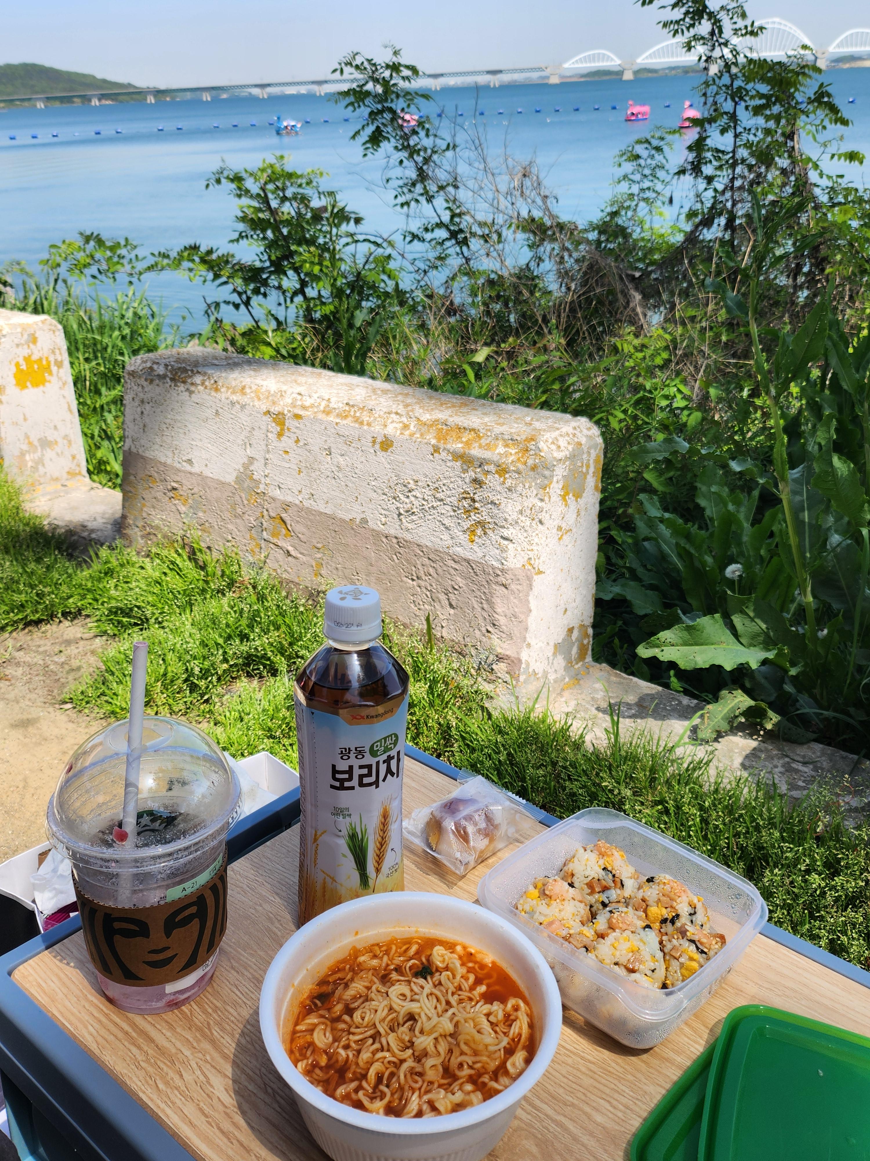 컵라면은 바로 앞 보트 체험하는 곳에서 매점이 있어 5분 정도 걸어서