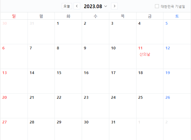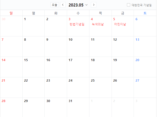 6월과 12월 빼고는 공휴일이 모두 있는걸 확인할 수 있습니다.